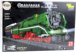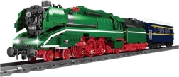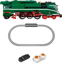 Този обширен конструктор съдържа всичко необходимо, за да сглобите впечатляващ парен локомотив с вагон и затворен кръгов маршрут. Благодарение на интегрираното RC управление и акумулатор 7.4 V Li-ion моделът е напълно функционален и готов за движение по включените релси.