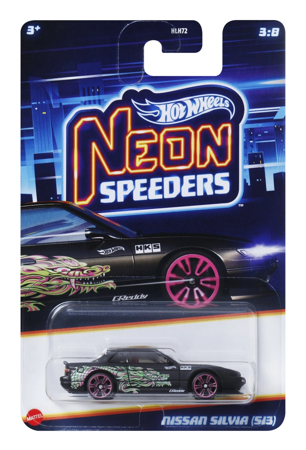 Колекцията HOT WHEELS Neon Speeders представя емблематични спортни автомобили в неонови цветове, които изпъкват във всяка колекция и на състезателната писта. Издръжливите метални каросерии са допълнени от прецизни пластмасови детайли и гладко въртене на колелата за плавно движение.