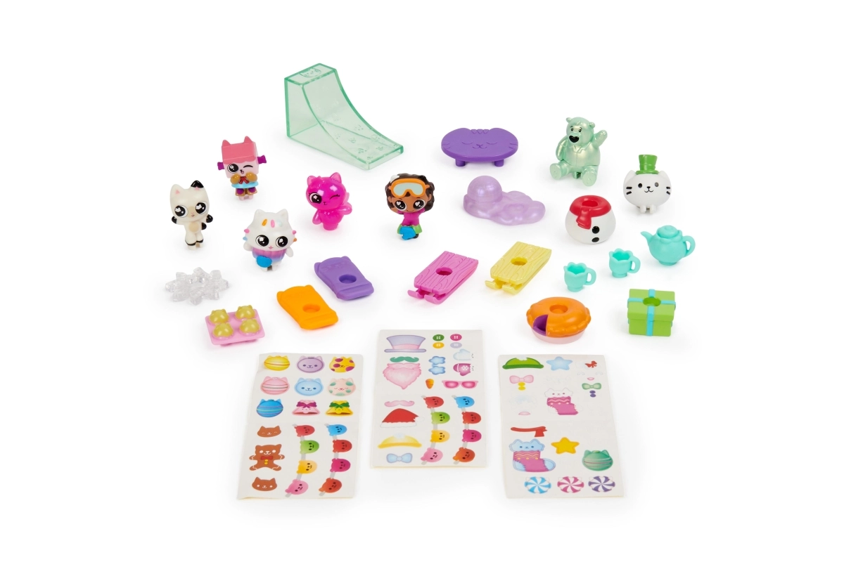 Смес от мини фигурки, аксесоари, мебели и стикери развива въображението и строенето на собствени зимни сцени от света на Gabby’s Dollhouse.
