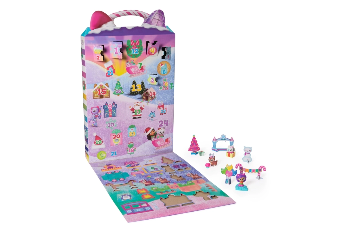 Направете адвента наистина специален. Този цветен календар във формата на къщичка крие 24 прозорчета с фигурки, аксесоари и мини сцени за безкрайни истории от Gabby’s Dollhouse. Не липсва ексклузивна филмова фигурка на Габи, нейната котешка компания и сладки аксесоари за зимна игра.