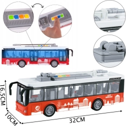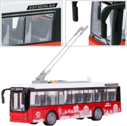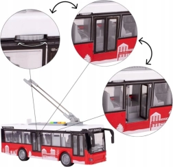 Реалистичният модел на градски тролейбус от марката WOOPIE ще зарадва всички малки почитатели на транспорта. Предлага светлинни и звукови ефекти, отварящи се врати, подвижни пантографи и фрикционно задвижване за движение напред и назад. Страхотен избор за креативна игра и научаване за обществения транспорт.