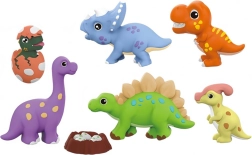- Различни динозаври и форми: стегозавър, трицератопс, тиранозавър, бронтозавър, паразавролоф и яйце с динозавърче