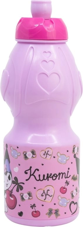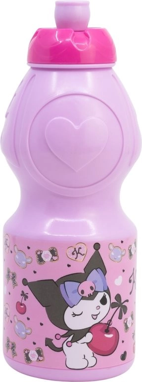 Стилна детска бутилка за пиене с мотив KUROMI и обем 400 ml, идеална за училище, излети и спорт. Предлага ергономична форма, предпазна капачка против протичане и неплъзгаща се повърхност за захват. Не съдържа BPA и фталати и се почиства лесно.