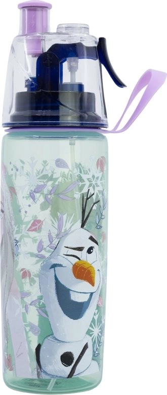 Практична детска бутилка за вода с обем 575 мл и любим мотив FROZEN комбинира удобно пиене от накрайник и освежаващ пулверизатор за вода. Идеална за училище, спорт и излети, изработена от безопасен материал без BPA.