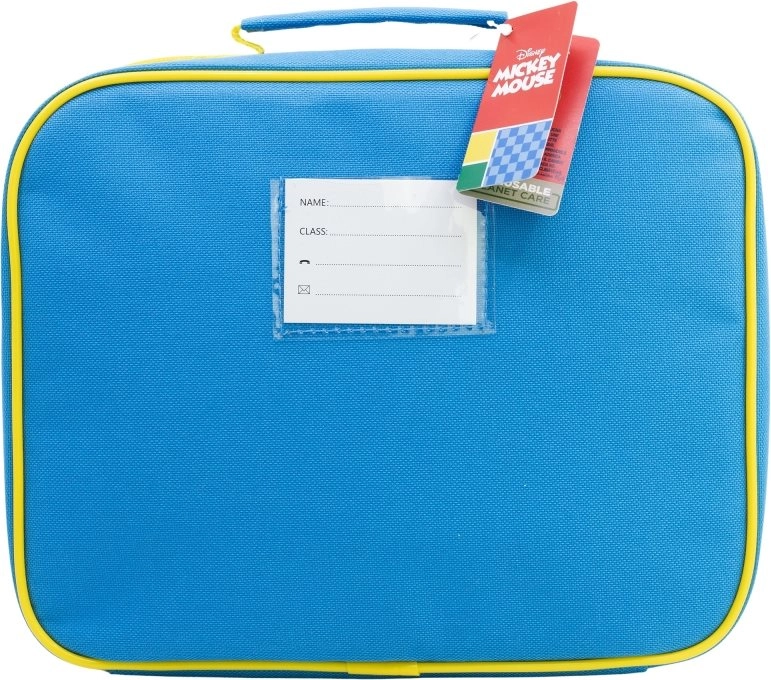 Практична термо чанта за обяд с мотив MICKEY MOUSE поддържа храната по-дълго свежа благодарение на изолационния материал. Предлага 1 просторен отдел, надеждно закопчаване с метален цип и етикет за лични данни – идеална за училище, екскурзии и занимания.