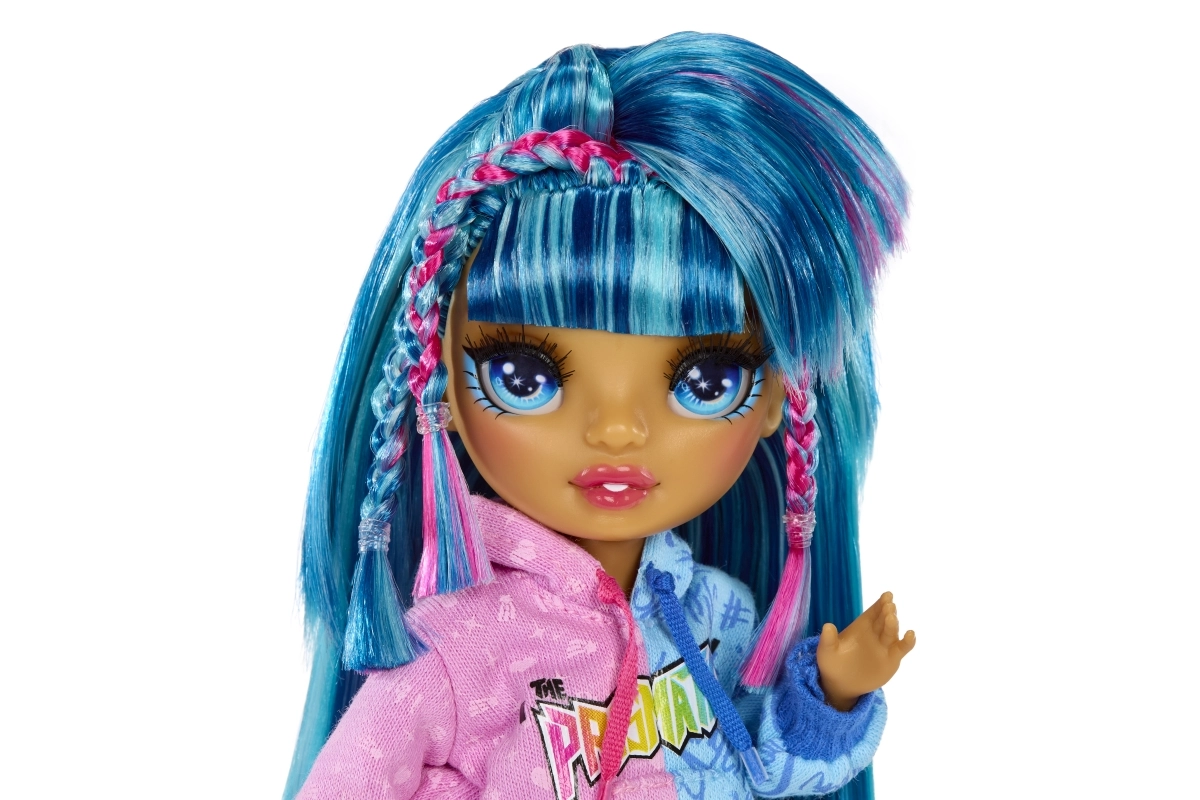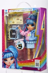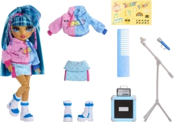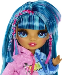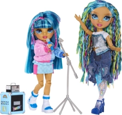 Куклата Скайлар Брадшоу от колекцията Rainbow High Jr. High сияе в емблематично синьо и е готова за сцената. Благодарение на напълно артикулираното тяло лесно ще я нагласиш в ефектни пози, а с микрофона и мини усилвателя ще направиш истинско шоу. Детайлно изработен тоалет, дълга синя коса и тематични аксесоари превръщат тази кукла в страхотно попълнение както за игра, така и за изложение.