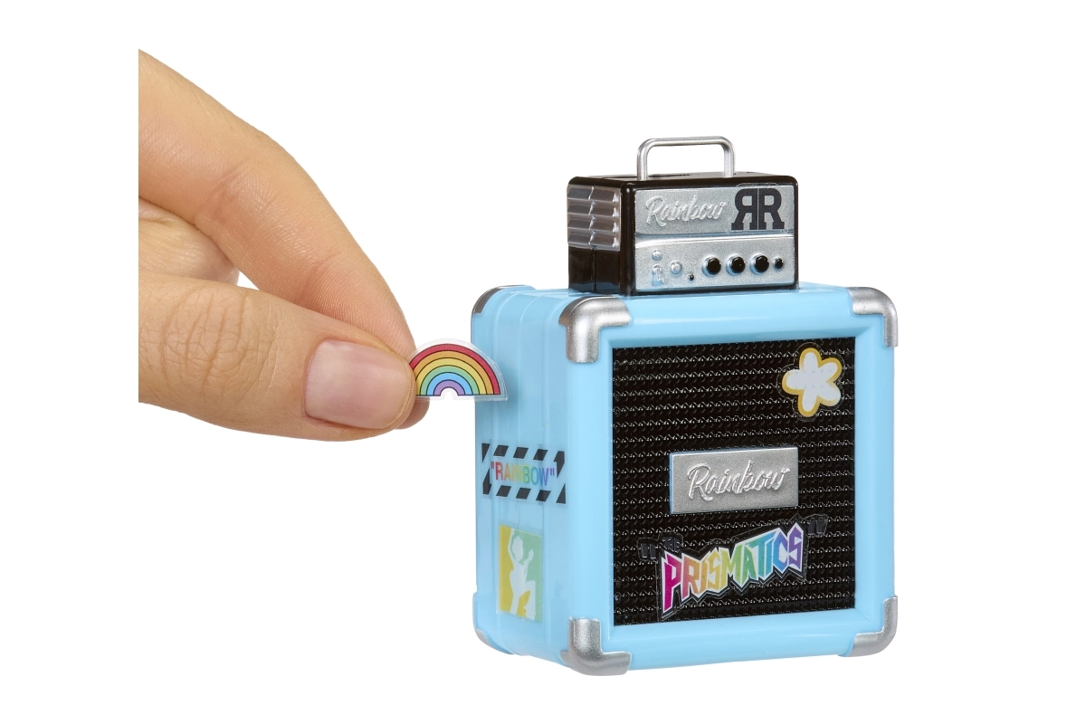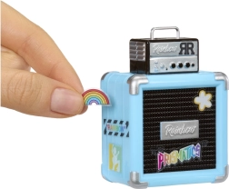 В комплекта ще намериш всичко за моментално музикално забавление – двуделен моден сет, стилни обувки, микрофон със стойка, мини усилвател, лист със стикери за декорация и гребен за прическа. Комбинирай аксесоарите, създавай истории и събирай и останалите членки на бандата, за да бъде сцената ти пълна.