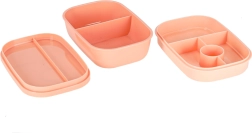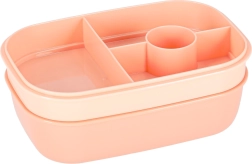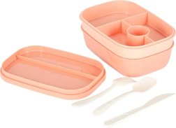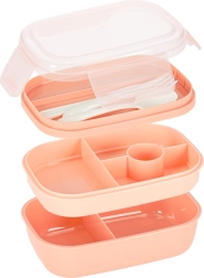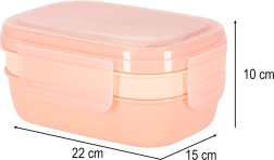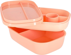 Трипластовата конструкция с 8 прегради позволява да опаковате основно ястие, гарнитури и междинни хапвания поотделно. Четири щипки здраво затварят капака със силиконово уплътнение, така че съдържанието остава в безопасност дори в чанта. Кайсиевият цвят придава модерен вид.