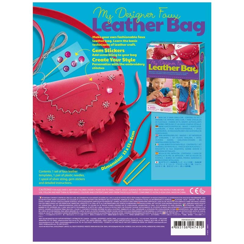 Направете оригинална чанта, която подчертава вашия стил. Този креативен комплект от 4M ви води стъпка по стъпка през изработката на чанта от изкуствена кожа – от изрязване и пробиване, през шиене, до финално декориране. Резултатът е практичен и елегантен аксесоар, който ще обикнете.