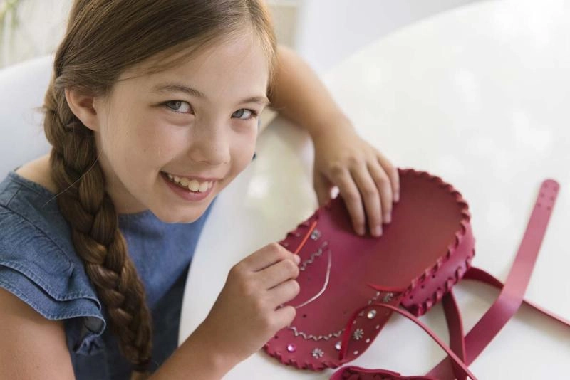 - Научете основни техники за работа с изкуствена кожа – изрязване, пробиване и елементарно шиене.