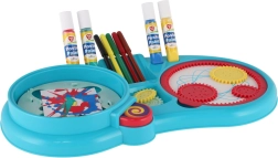 - Въртяща се платформа за спин-арт, зъбни колелца, държачи за писалки, цветни флумастери, плакатни бои, органайзер