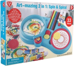 Един комплект, две техники. Създавайте перфектни спирали със зъбни колелца или оставете боите да танцуват върху въртяща се хартия за ефектни спин-арт картини.