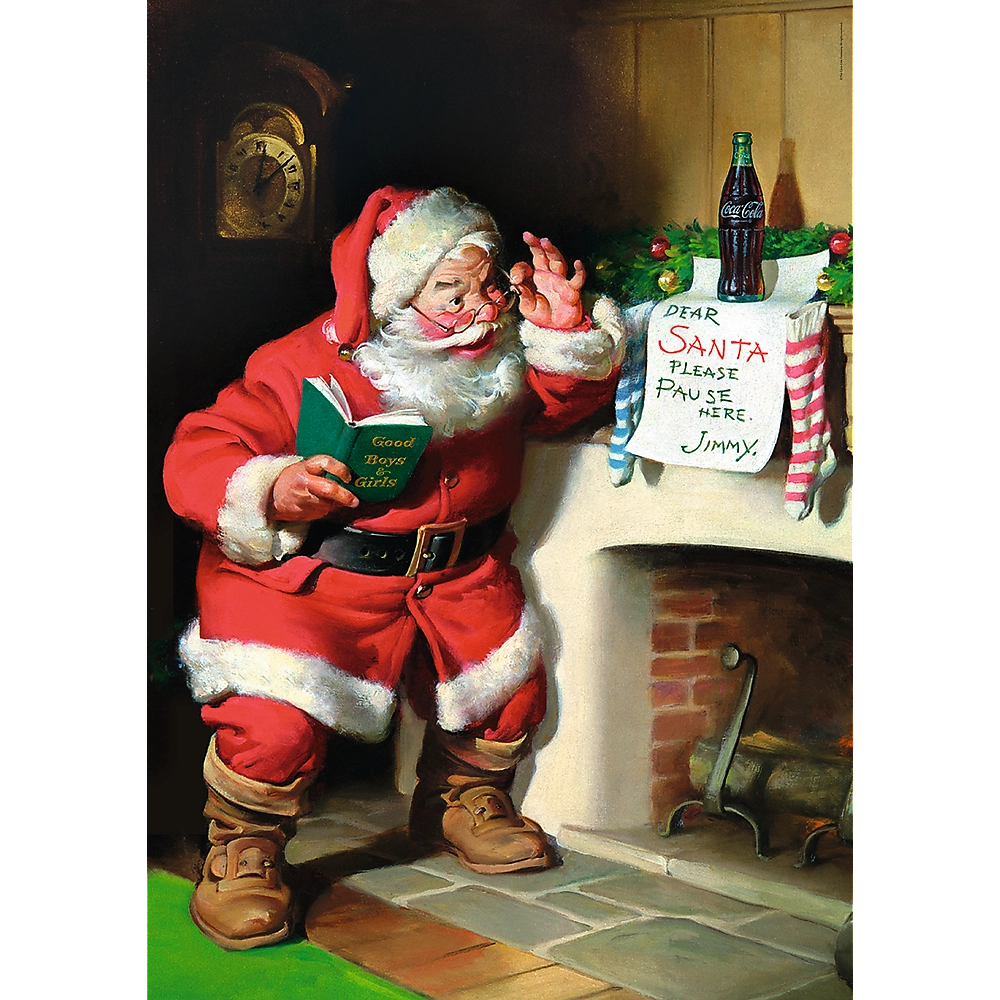 Насладете се на празничната атмосфера с пъзел от 1000 части с мотив COCA‑COLA и Дядо Коледа до камината. Качествени екологични материали и каландрирана хартия за по-добро отражение на светлината улесняват подреждането. След сглобяване се получава картина с размер 683 × 480 mm.