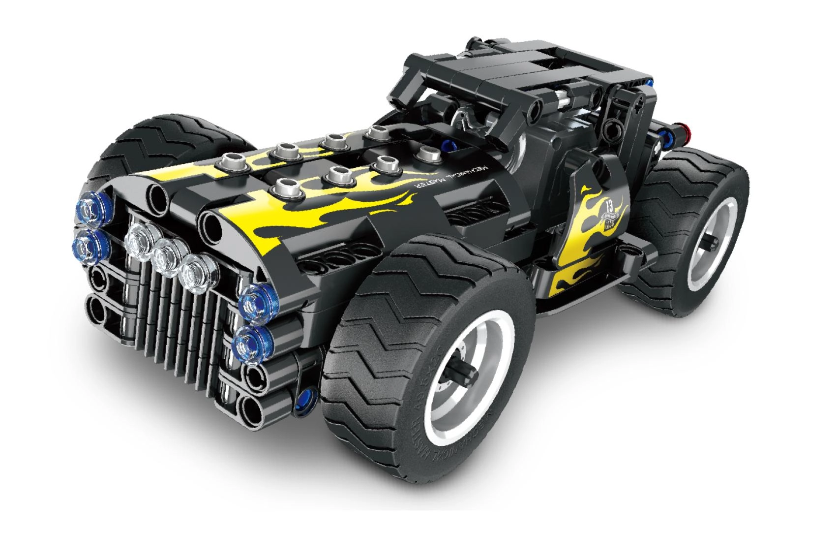 Техническият конструктор iM.Master предлага забавно и поучително строене за деца, които обичат колите и механиката. От 177 качествени пластмасови части сглобявате подробен модел на спортен автомобил с функционален механизъм за обратно навиване, така че колата след сглобяване наистина потегля напред.