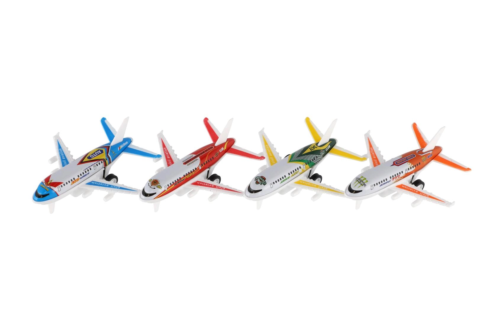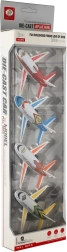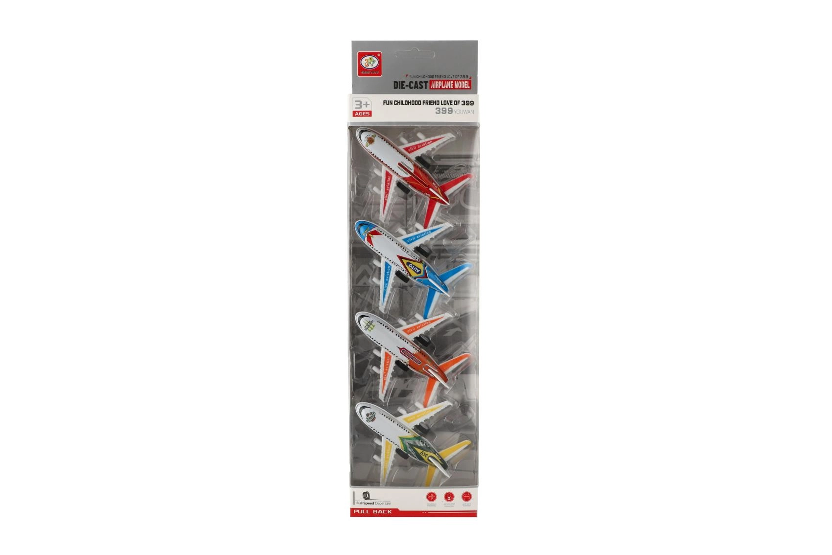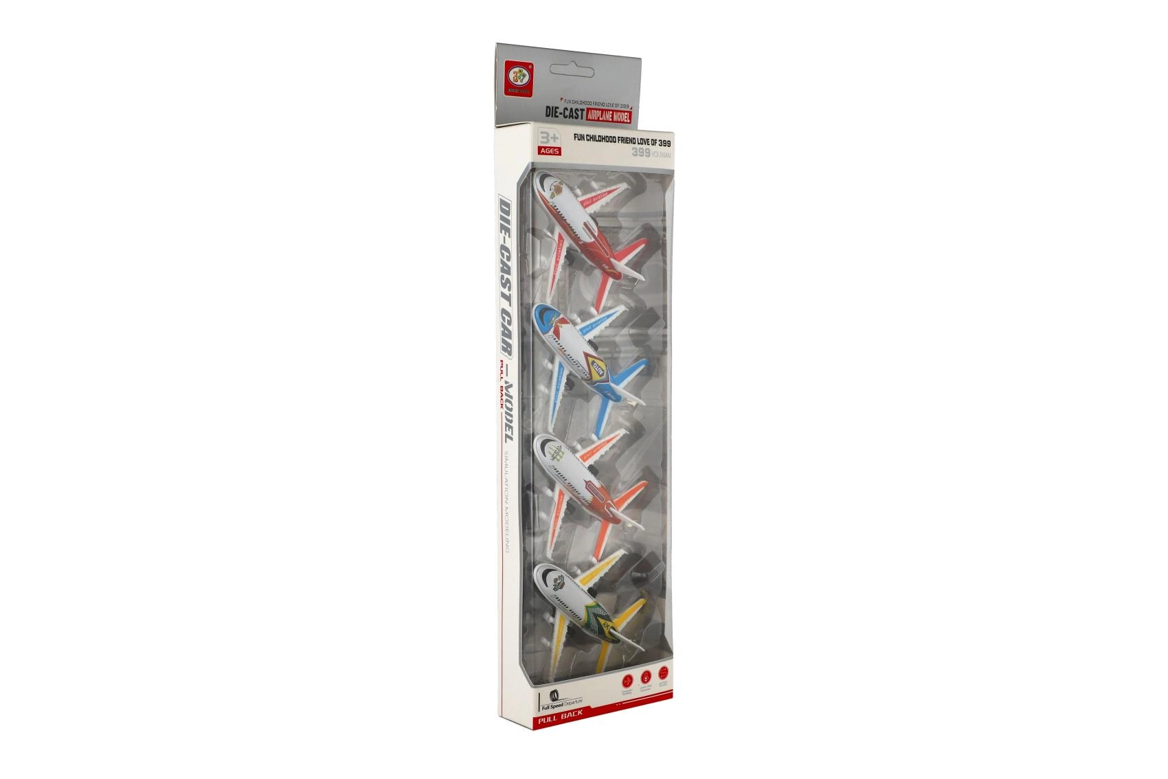 Този комплект включва четири детайлно изработени лични самолета, направени от издръжлива комбинация от метал и пластмаса. Благодарение на фрикционния механизъм с обратно навиване самолетчетата се управляват лесно и предлагат много забавление у дома и в движение.