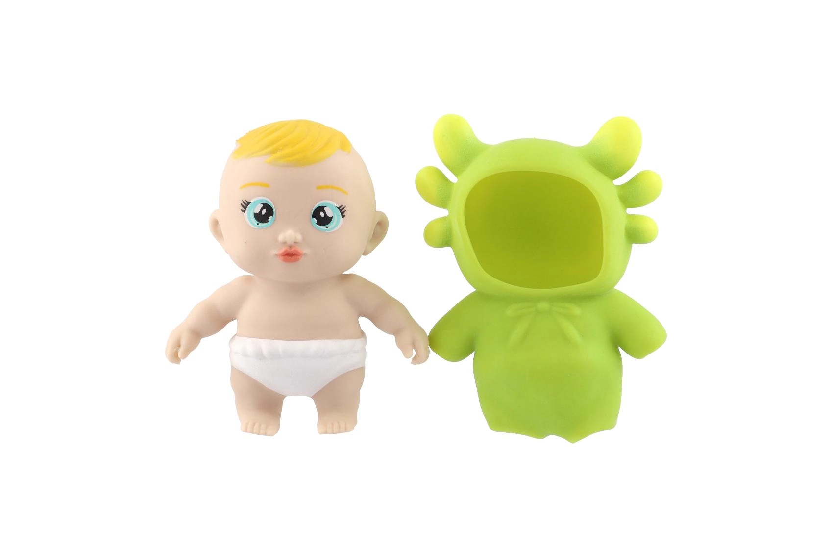Сладко антистресово бебе в еластичен животински костюм е чудесен избор за деца и възрастни, които търсят бързо облекчение от напрежението. Изработено от мек и еластичен силикон, приятно за стискане и след натиск се връща в първоначалната си форма. Забавна функция е възможността бебето да се изважда от костюма и отново да се облича, което подпомага фината моторика и развива въображението по време на игра.