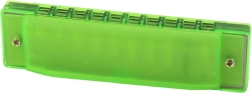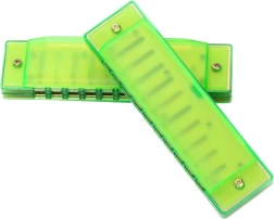 Тази компактна диатонична хармоника е създадена, за да бъдат първите стъпки в света на музиката забавни и интуитивни. Полупрозрачното зелено тяло от издръжлива пластмаса ляга удобно в малката ръка, поддръжката е лесна и е безопасна за деца. Благодарение на 10-те отвора позволява да се упражняват основни мелодии, ритъм и координация на дишането.