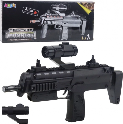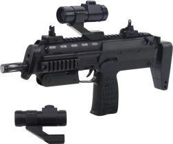 Реалистично изработен детски автомат ще зарадва малките фенове на екшън игрите. Благодарение на светлинните и звукови ефекти и включения прицел играта е още по-забавна. Здравото пластмасово изпълнение гарантира безопасна употреба и дълъг живот, идеално като подарък за деца, които обичат динамичното забавление.
