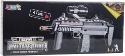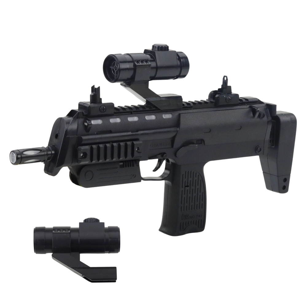 Влезте в света на действието с детски автомат с дължина 41 см. Реалистичният вид, ефектите светлина и звук и сваляемият прицел стимулират фантазията на всеки малък полицай или войник. Благодарение на здравата изработка от качествена пластмаса играчката е безопасна и подходяща за ежедневна игра.