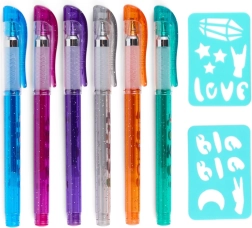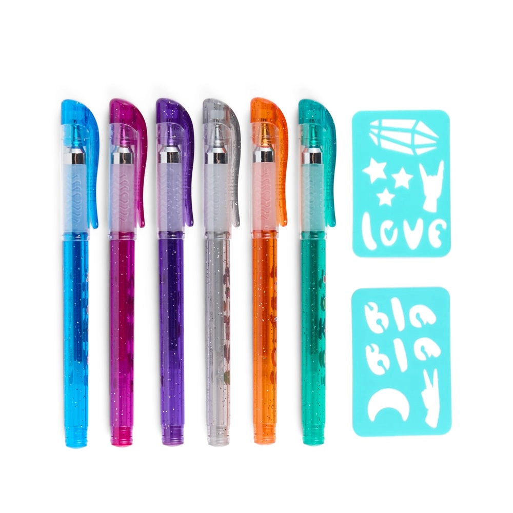 Този тату комплект е чудесен избор за малки и големи творци. В комплекта ще намерите шест гел химикалки в пъстри цветове – розово, синьо, лилаво, зелено, оранжево и сребърно. Всяка химикалка е леко ароматизирана, така че при рисуване осигурява не само визуално, но и ароматно изживяване. Двата включени шаблона с различни мотиви ще ви помогнат лесно да създадете прецизни и атрактивни дизайни без предишен опит.