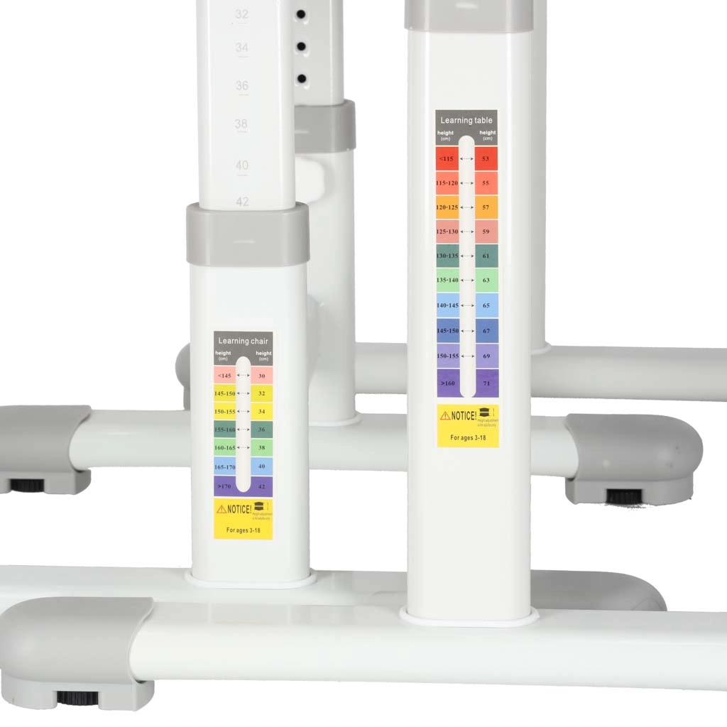 - Растяща конструкция: регулиране на височината на масата (53–71 см) и седалката на стола (30–42 см)