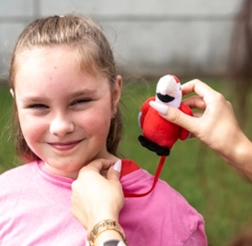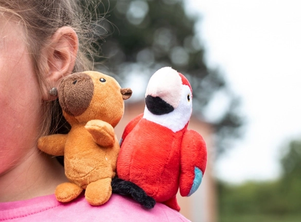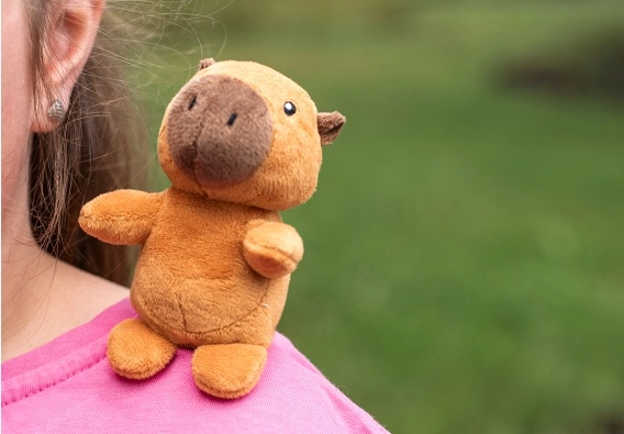Умният магнит вътре в плюшената играчка осигурява здраво, но щадящо закрепване на рамо, ръкав или раница – без безопасни игли и сложно закачане.