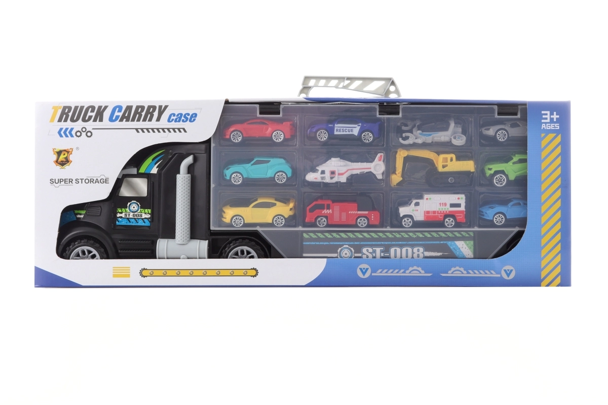 Този страхотен камион превръща всяка стая в оживена писта. В ремаркето ще намерите богато оборудване – 11 различни колички и хеликоптер, с които децата лесно ще измислят много игри и състезания. Благодарение на функцията за изстрелване количките бързо се привеждат в движение и забавлението може да започне.