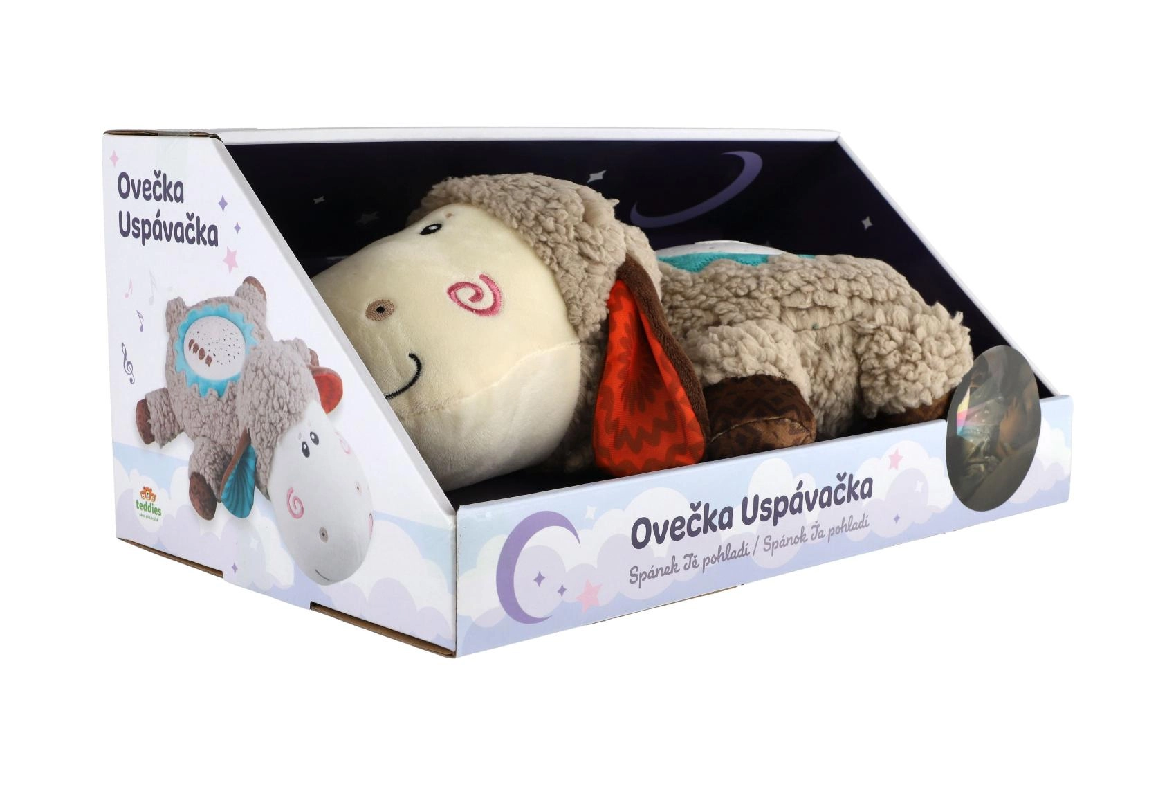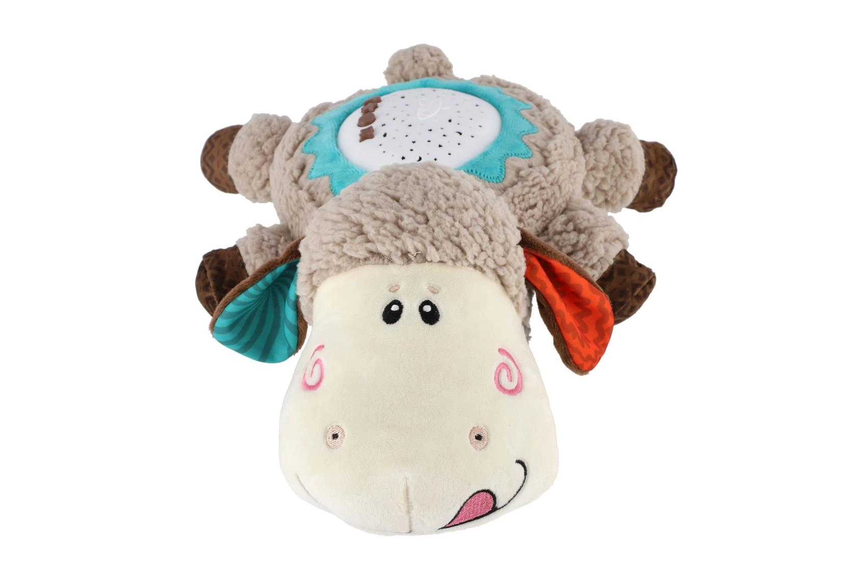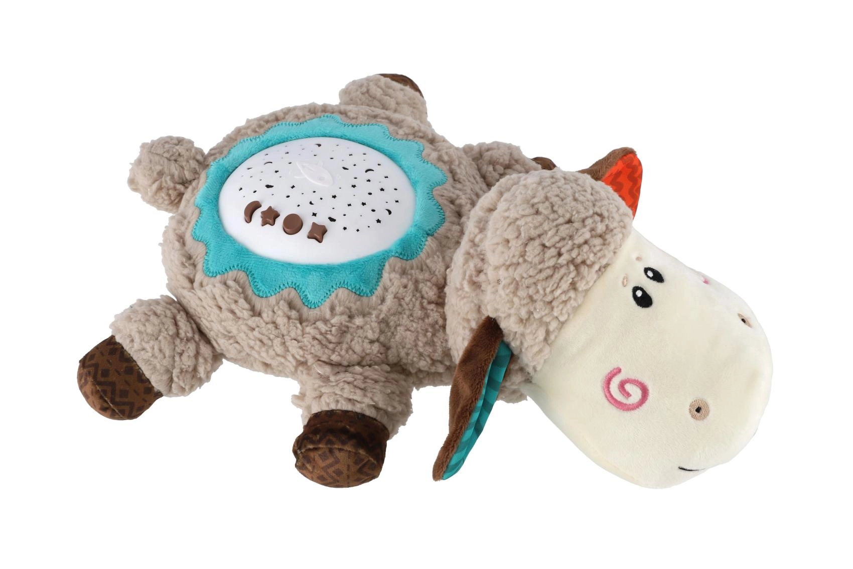 Агънцето излъчва приятна топла светлина и възпроизвежда мелодии и приглушени звуци от природата за спокойно заспиване без стрес.
