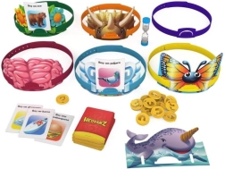 Популярната игра за отгатване Hedbanz се завръща в модерна версия. Сложете тематичната лента за глава, плъзнете карта така, че другите да я виждат, и питайте хитро: „Животно ли съм? Храна ли съм? Предмет ли съм?“ Благодарение на простите правила играта се разбира на мига и е чудесна за семейни събирания, празненства и вечери с приятели.