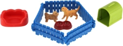 Този игрален сет включва две фигурки кученца с реалистични детайли, ограда за създаване на заграждение и практични аксесоари като купичка и легълце. Децата могат да създадат свой собствен свят и да тренират грижата за животни.