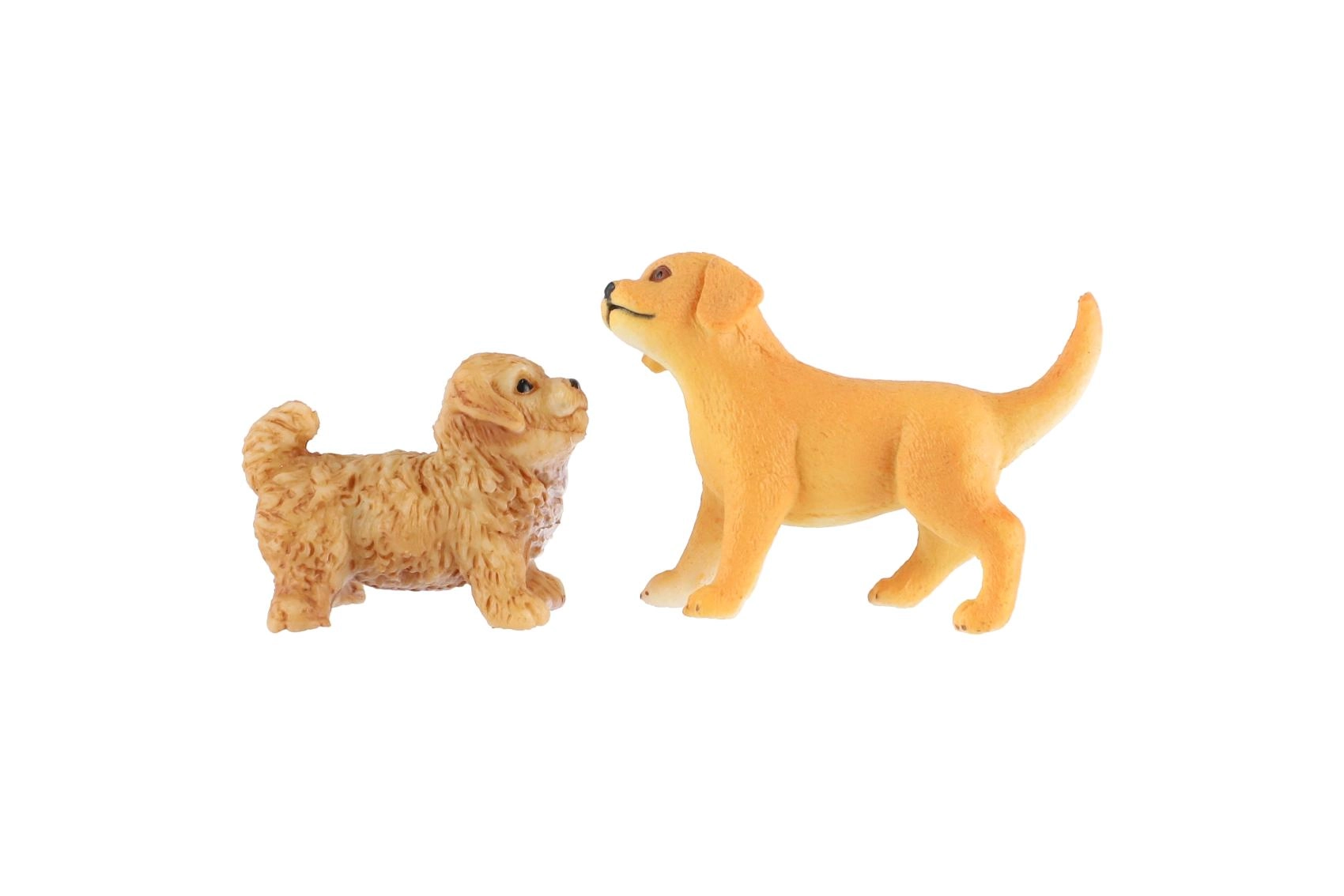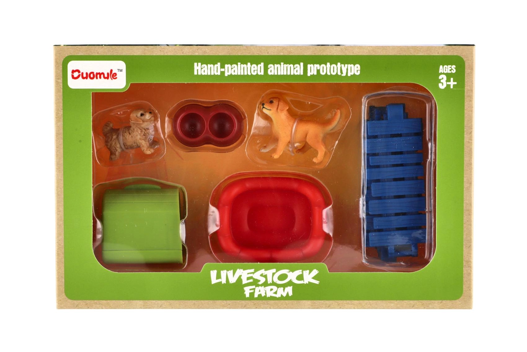 Две сладки пластмасови кученца в реалистична изработка с ограждение и аксесоари ще зарадват всеки малък любител на животните. Комплектът развива въображението, емпатията и фината моторика и е идеален за игра на грижа за домашни любимци, разходки и изграждане на собствена градинка. Доставя се в цветна кутия – чудесен и като подарък.
