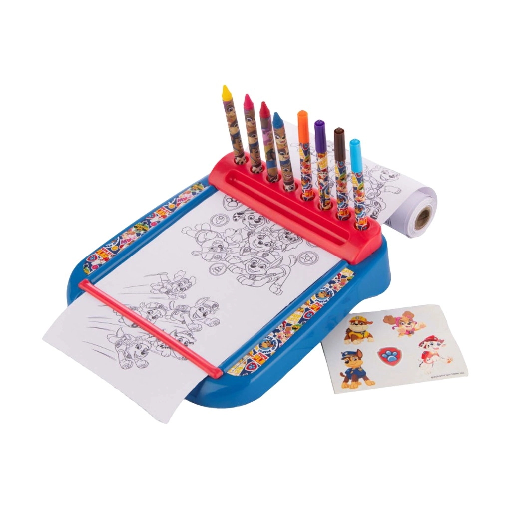 Насладете се на часове творчество с практичната стойка и дългата ролка с оцветявки с героите от PAW PATROL. Благодарение на вградения държач хартията е винаги под ръка, а работата остава подредена. Комплектът включва и основни художествени материали, така че децата могат да започнат да творят веднага.