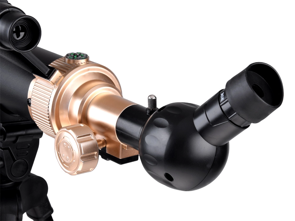 Включено е всичко необходимо: два окуляра за бърза смяна на увеличението 30x/60x, зенитно огледало за удобно наблюдение, търсач за лесно прицелване и държач за телефон за заснемане на снимки и видеа. Безопасността при дневна астрономия е осигурена от мембранен филтър за наблюдение на Слънцето.