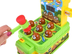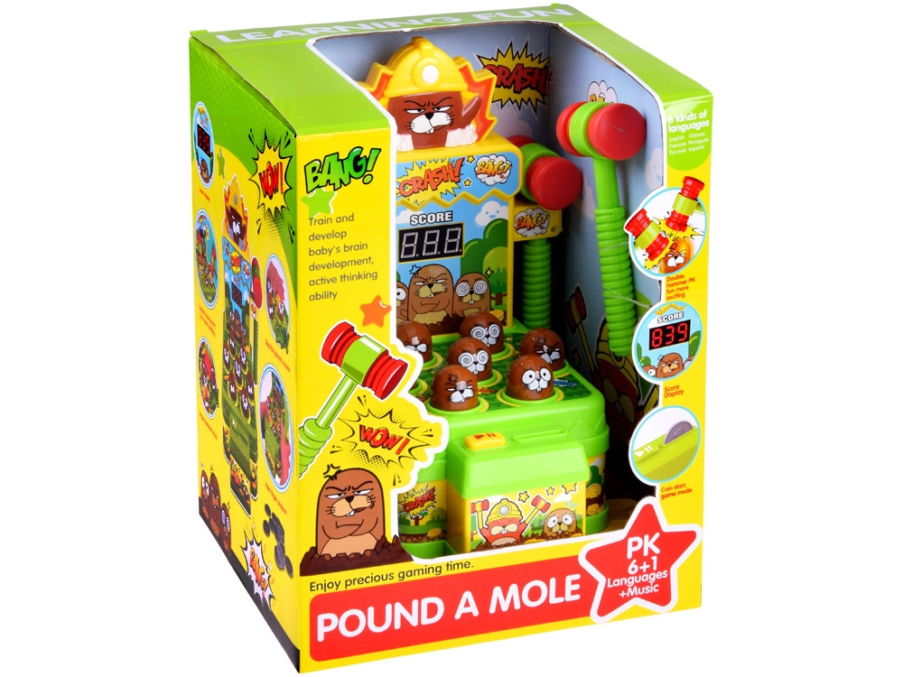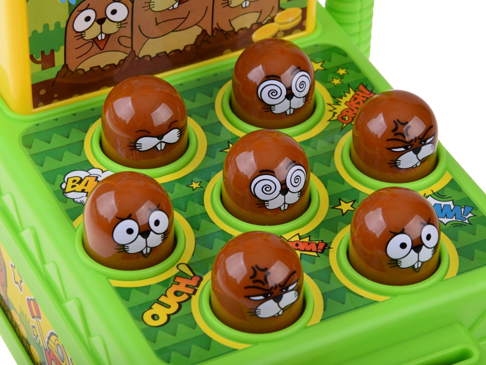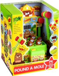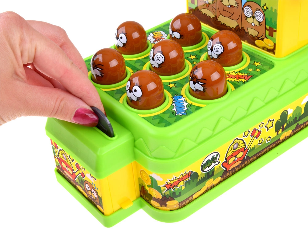 Открийте семейно забавление, което грабва от първия удар. На игралното поле на случаен принцип се осветяват 7 къртици – вашата задача е възможно най-бързо да уцелите с мек гумен чук именно тези, които светят. Всеки удар добавя точки, които виждате на ясния дисплей. Играта развива фината моторика, координацията и скоростта на реакциите.