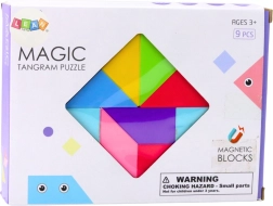 Магнитните танграм кубчета са умен избор за учене чрез игра. Девет здрави и цветни елемента могат благодарение на мощните магнити стабилно да се съединяват в различни форми, животни или фигури. Така децата естествено развиват концентрация, координация око–ръка и търпение.