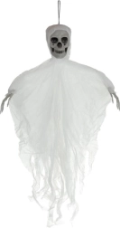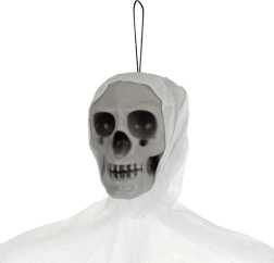 Реалистичен висящ скелет с череп и раздърпана тъкан мигновено създава зловеща атмосфера. Лека конструкция и ухо за окачване позволяват лесно поставяне на таван, врата или полилей, както и под покрити външни пространства. и по-големият размер 70 cm гарантира, че ще е в центъра на вниманието. Страхотно за Хелоуин, тематични партита и сценография.