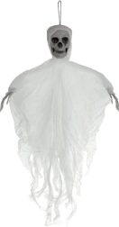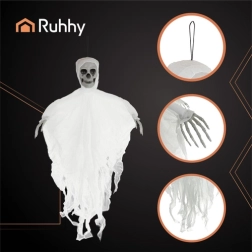 Създайте си „haunted house“ у дома за миг. Този висящ бял скелет RUHHY се отличава с реалистична визия и леко изпълнение, така че лесно да го окачите навсякъде, където е нужно. Раздърпаната материя се движи и при най-малкия полъх и придава на декорацията леден, жив ефект.