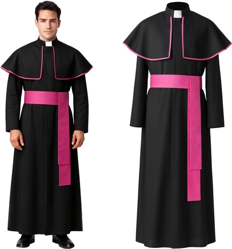 Класически костюм на духовник с дълга сутана, наметка с колар и лилав пояс е готово преобличане, идеално за Halloween, карнавал, косплей и театрални представления. Свободната кройка в универсален размер XL/XXL осигурява удобство и лесно обличане, а реалистичният вид привлича внимание на всяко събитие.
