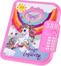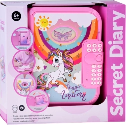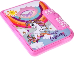 Открийте магията на собствените си тайни с интерактивния дневник с мотив еднорог. Благодарение на четирицифрения код всички записки и дребни вещи са надеждно защитени. Дневникът предлага 6 функционални бутона, запис и възпроизвеждане на глас, промяна на гласа и 10 вградени мелодии. В комплекта са включени розов бележник, флумастер и скрито отделение за съкровища.
