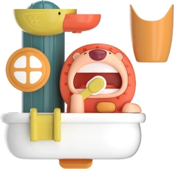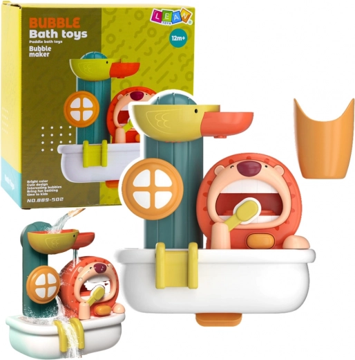 Интерактивна къпеща се играчка под формата на цветен пеногенератор превръща ежедневната хигиена в забавление. Усмихнатият лъв „миe зъби“ и пуска богата пяна, докато патенцето стартира водна пързалка с въртящи се колела. Благодарение на вендузите се закрепва за ваната и плочките и насърчава децата към самостоятелност и здравословни навици.