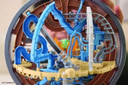 С въртене и накланяне на сферата водите топчето през рампи, примки и мостове – идеално за развитие на концентрация и координация при деца от 8 години.