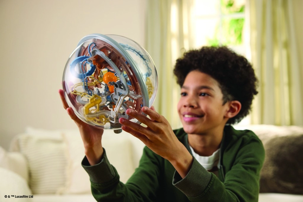 Perplexus Star Wars Mandalorian е емблематична 3D главоблъсканица в прозрачна сфера с прецизно трасе, пълно с рампи, завои и препятствия. Целта е с фини движения на ръцете да насочите топчето от старта до финала, без да падне от пътеката. Играта отлично развива търпение, координация око–ръка и пространствено мислене.
