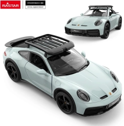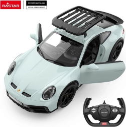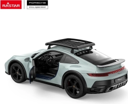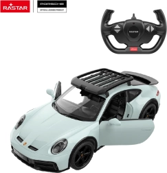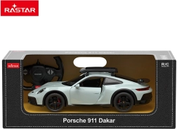 Стилната RC кола PORSCHE 911 Dakar от марката RASTAR в мащаб 1:14 впечатлява с прецизна изработка на детайлите, плавно движение и надеждно управление на честота 2,4 GHz. Предлага LED осветление, отварящи се врати, независимо окачване и гумени гуми за по-добро сцепление.