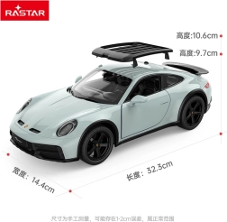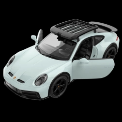 Този лицензиран модел PORSCHE 911 Dakar в елегантен ментов цвят е изработен от висококачествен ABS пластмаса и първокласни механични и електронни компоненти. Вярно пресъздава реалния прототип и се отличава с бързо, прецизно движение и богато детайлизиран интериор.