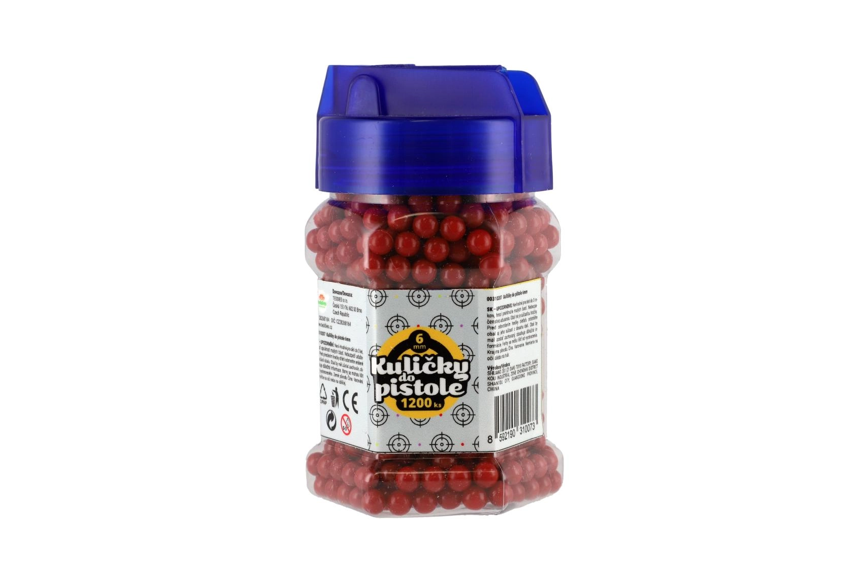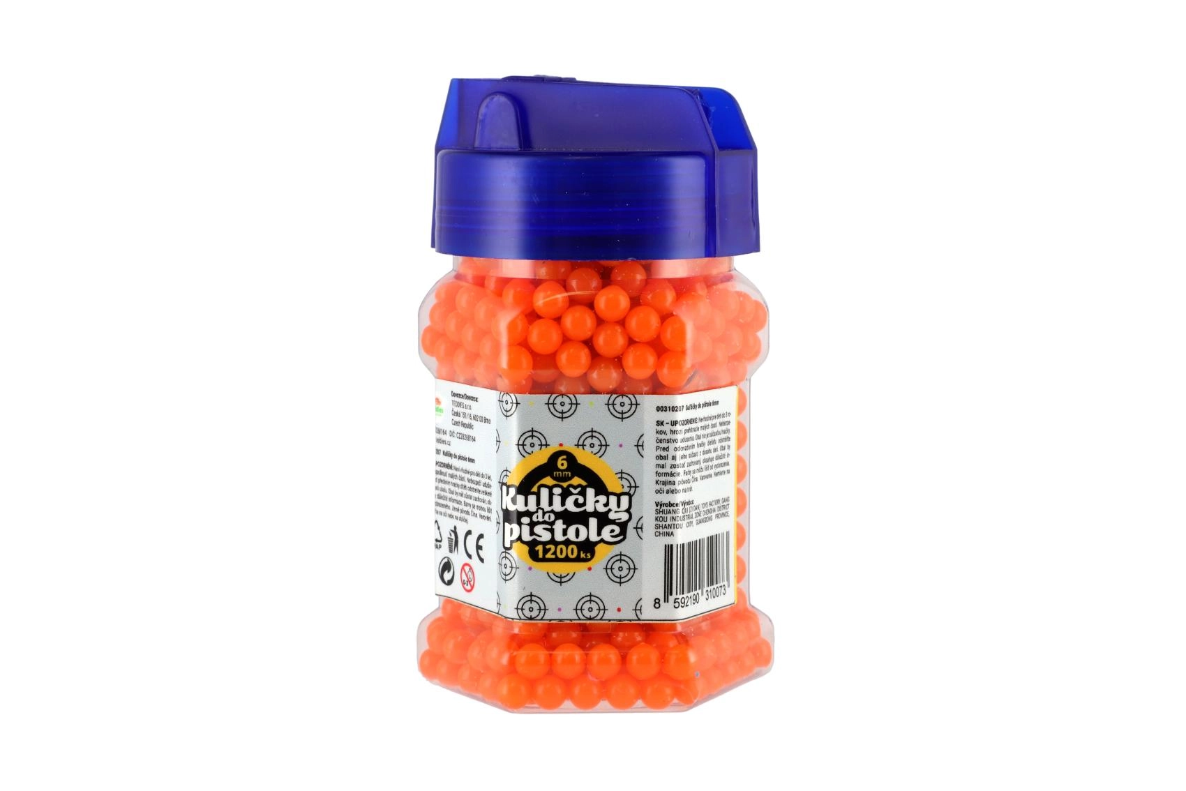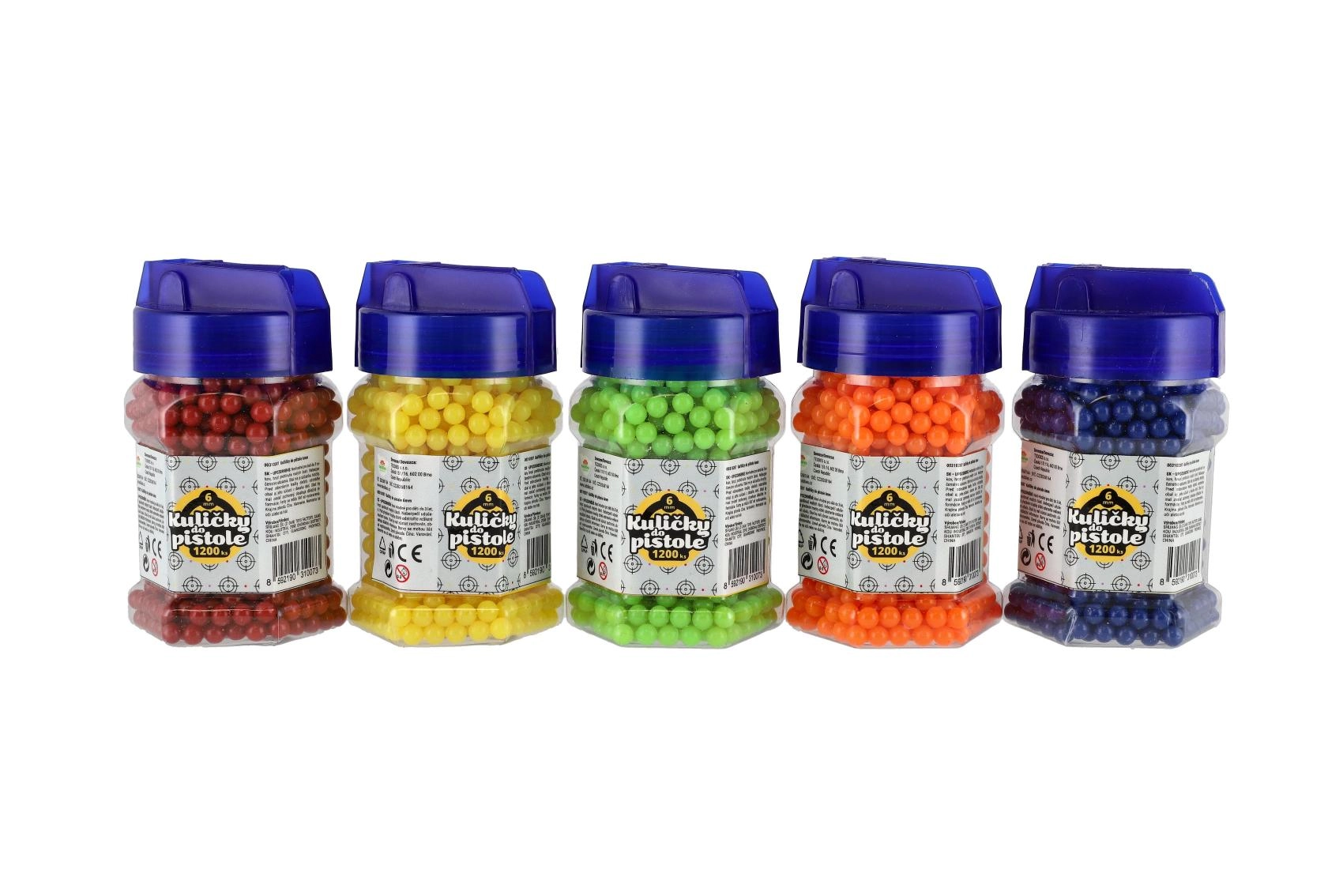 Резервни пластмасови топчета с диаметър 6 мм за детски пистолети – идеални за забавна стрелба по мишена. Опаковката съдържа 1200 леки топчета в практично шишенце с капачка за лесно дозиране и съхранение. Топчетата са налични в микс от цветове и са подходящи за стандартни детски играчки-пистолети.