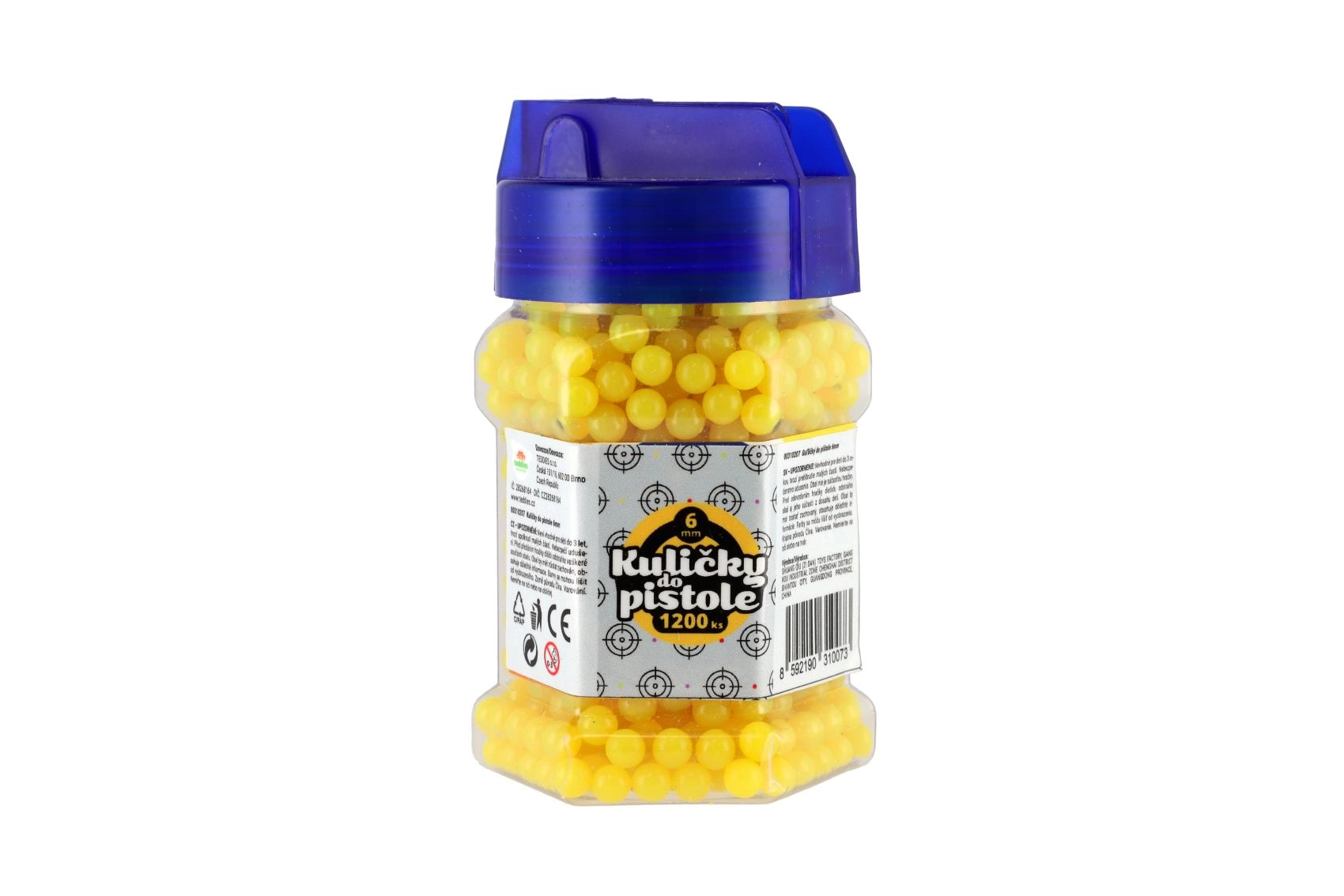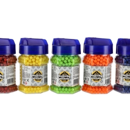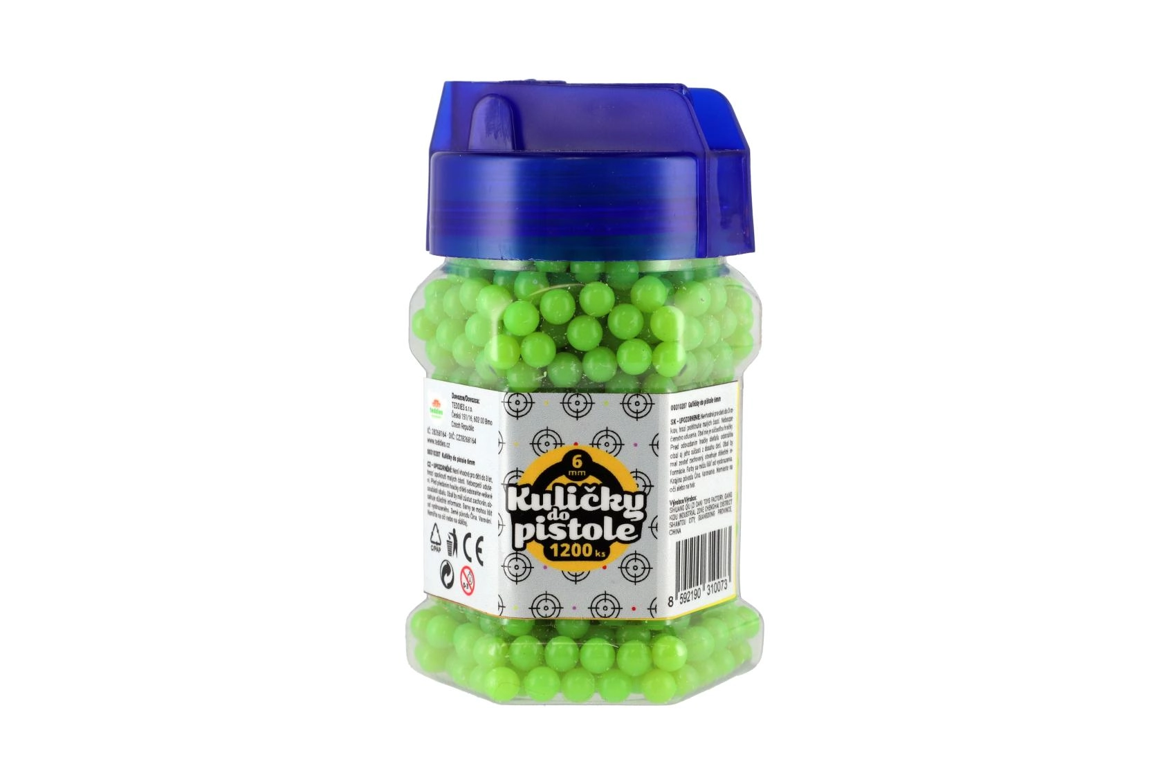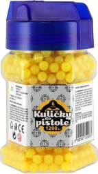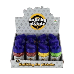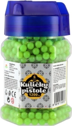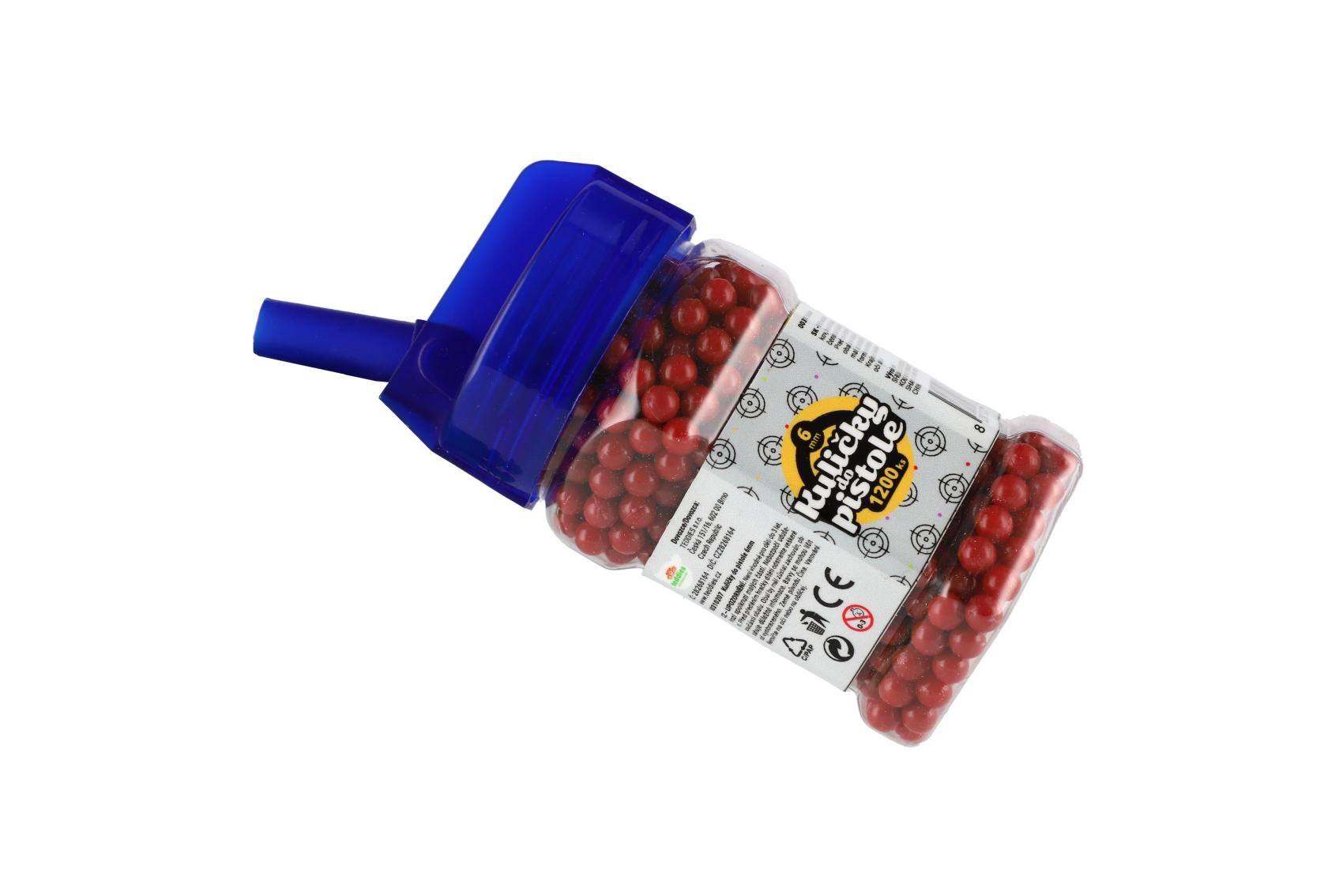 Резервни пластмасови топчета с диаметър 6 мм за детски пистолети – идеални за забавна стрелба по мишена. Опаковката съдържа 1200 леки топчета в практично шишенце с капачка за лесно дозиране и съхранение. Топчетата са налични в микс от цветове и са подходящи за стандартни детски играчки-пистолети.