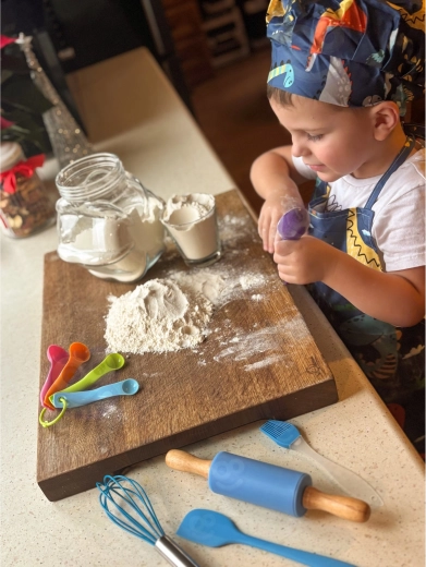 Леки инструменти от материали, безопасни за контакт с храни, силиконови елементи за лесно почистване и детски размери за по-добър захват и увереност при работа.
