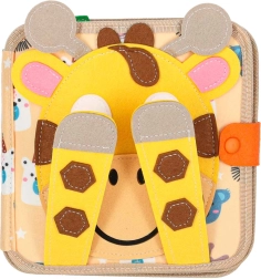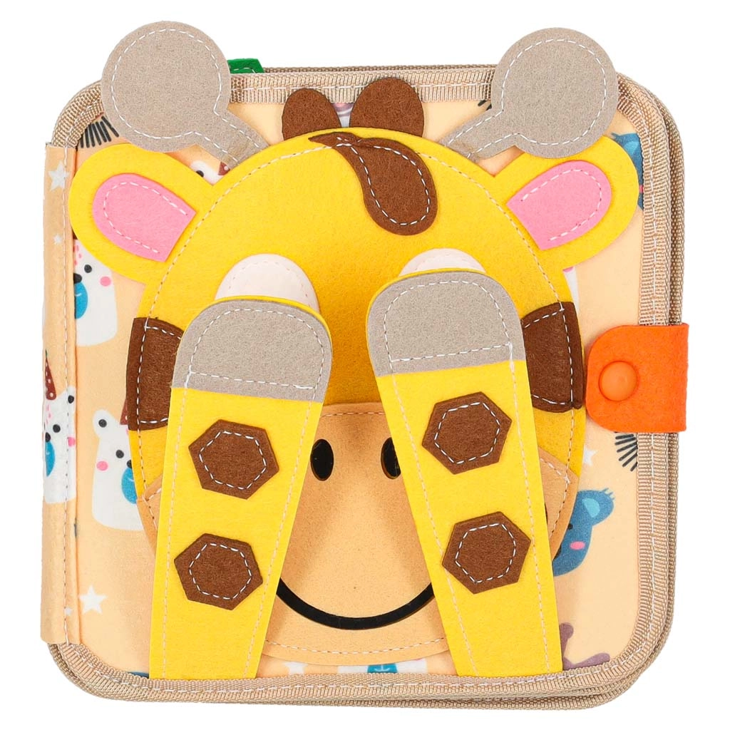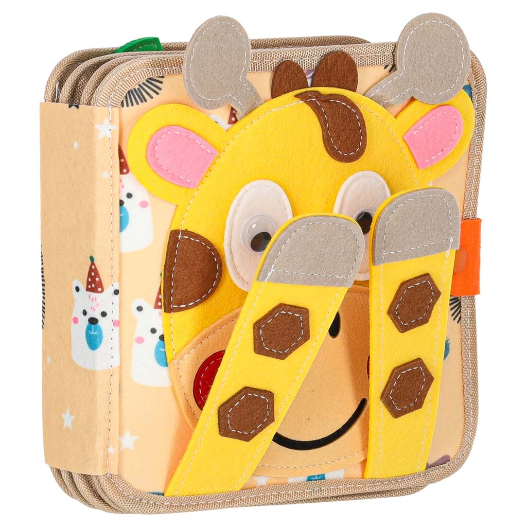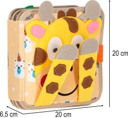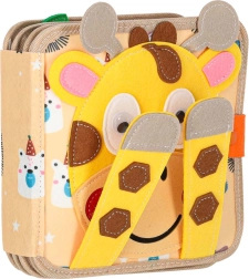 Открийте игривата филцова книжка, която развива фината моторика, въображението и разпознаването на цветове и форми. Благодарение на меките сетивни елементи, сваляемите части с велкро и тик-так копчета и удобния формат за път децата ще я обикнат. Веселата жирафа води детето през страници, пълни с активности, които подкрепят ученето чрез игра.
