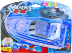 Забавната синя патрулна лодка за вода носи на децата безкрайни водни мисии във ваната и басейна. Предлага светлинни ефекти, звук и автоматично пръскане на вода за реалистично действие. Благодарение на безопасната пластмаса и закръглените форми е подходяща и за по-малки деца и насърчава фантазията и креативността.