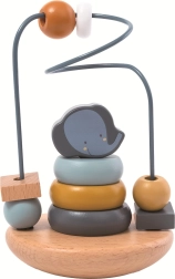 Лабиринт с мъниста със слон тренира координацията ръка–око и захвата, а дъговите дъги помагат за подреждане по размер и изграждане на креативни форми.